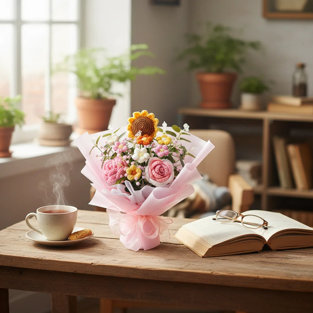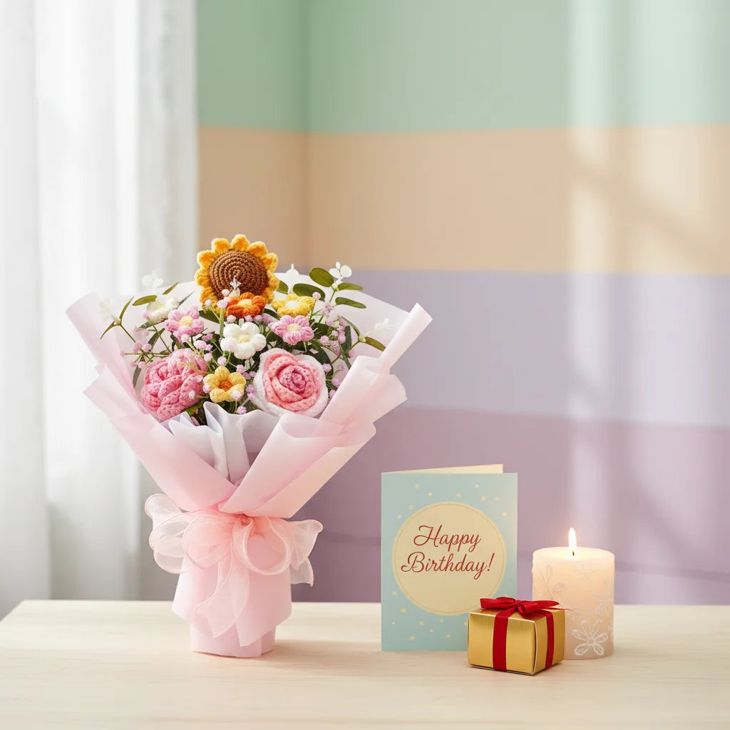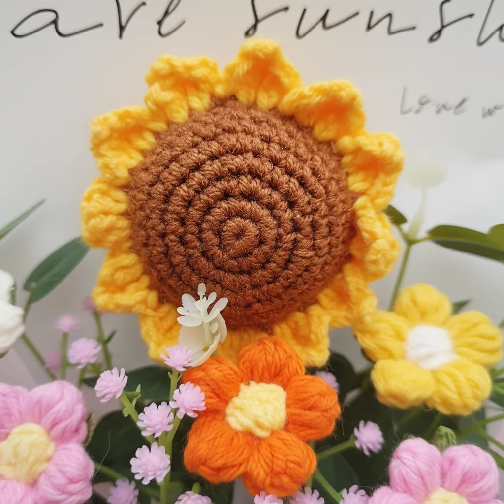 Unlike traditional flowers that wilt and fade, your handmade crochet sunflower bouquet is a vibrant, everlasting symbol of your affection. It's a memory, a feeling, captured forever, bringing joy long after the occasion.